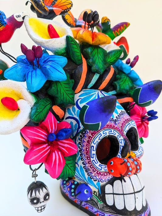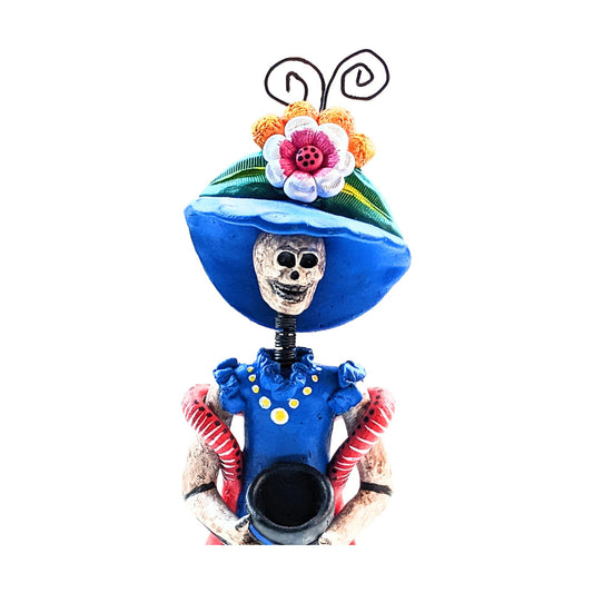 The playfulness and humor in the skeletons found throughout Mexico during the Day of the Dead or Dia de los Muertos reflect the belief that death is another aspect of life with all its variety and vivaciousness. This very important festival is combined with All Saints Day, November 1st, when the spirits of children return, and All Souls Day, November 2nd, when adult spirits return. During this annual reunion the souls of the dead are welcomed as honored guests by their friends and family.