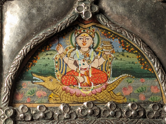 Antique Indian Silver Pendant with Goddess Ganga Image