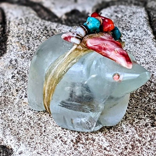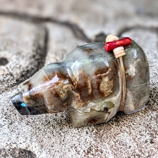 Zuni Fetish Flourite Bear with Medicine Bundle